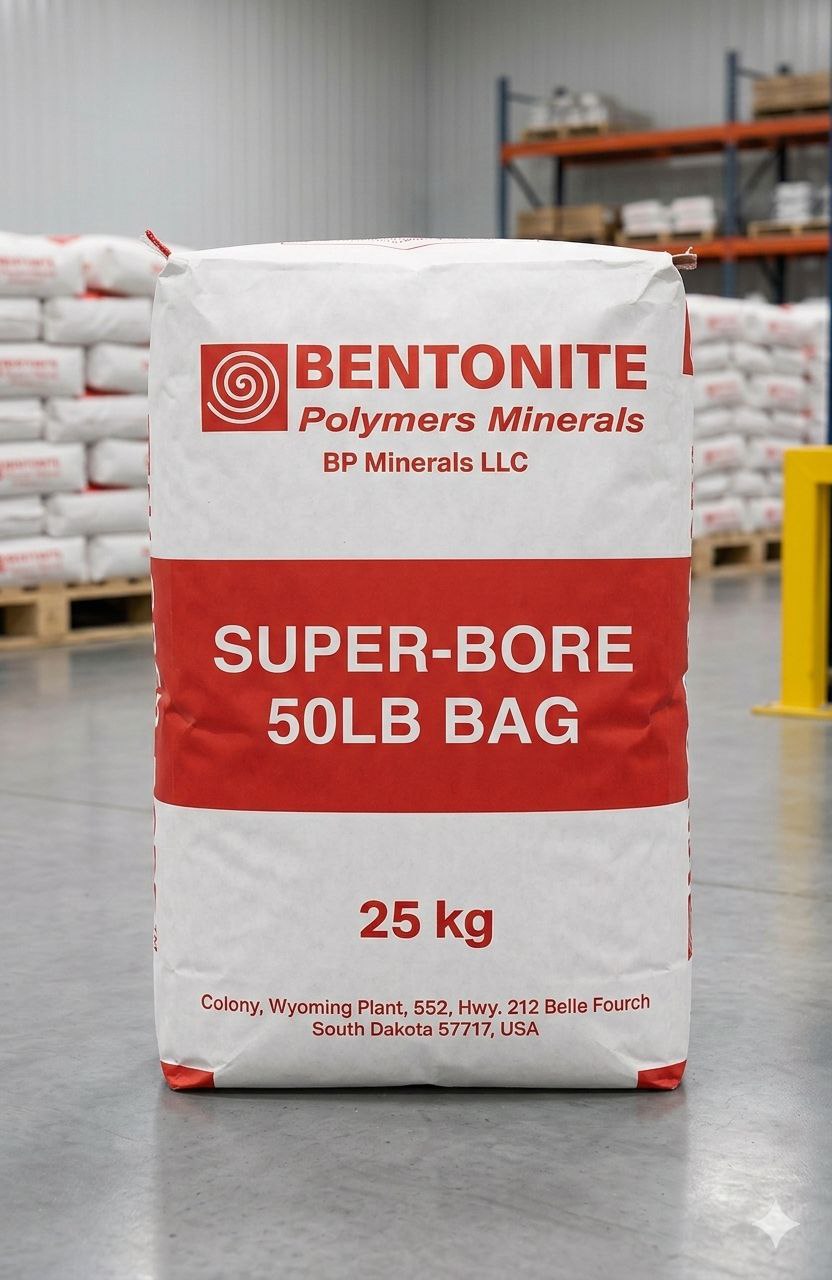 Бентонит Super-Bore 50LB BAG (Супер-Бор 50ЛБ Бэг) -Классическая базовая система для горизонтально-направленного бурения на основе американского вайомингского бентонита. Предназначен для любых типов грунтов. Используется как основа многокомпонентного бентонито-полимерного раствора. Совместим со всеми типами полимеров.